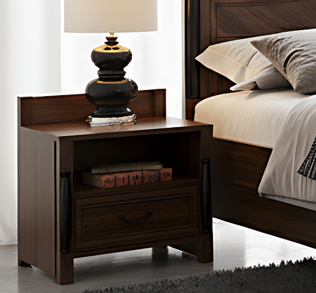 Dark Walnut Chevron Panel Solid Wood Bedroom Set