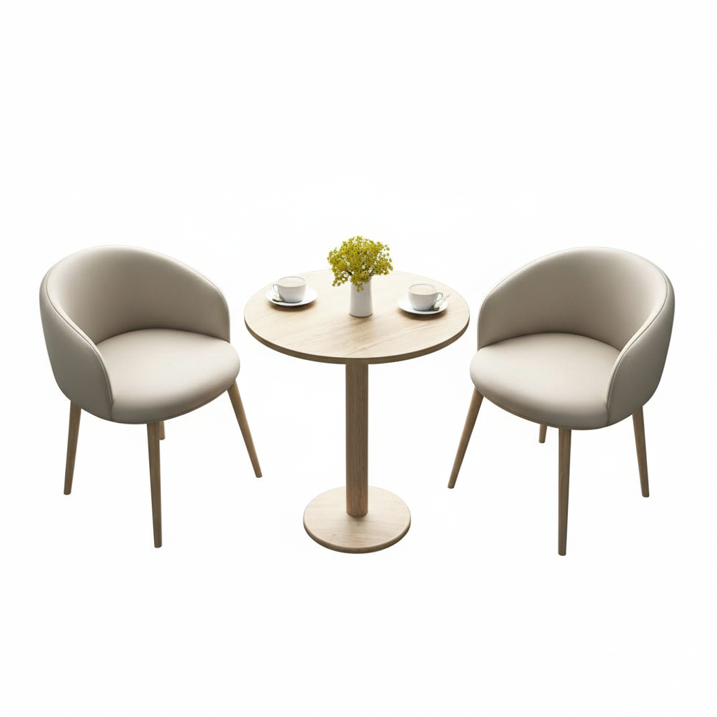 This elegant dining or accent chair combines contemporary comfort with classic Nordic simplicity. The seat is formed in a smooth, ergonomic tub shape, fully upholstered in a soft, durable fabric, shown here in a versatile, warm off-white or light beige color. The clean lines and gentle curve of the back and armrests provide a comfortable, enveloping seating experience, perfect for long conversations or meals. The chair is supported by four slim, tapered legs crafted from light-colored beechwood, reinforcing the airy, modern Scandinavian aesthetic. Ideal for small dining areas, breakfast nooks, or as stylish occasional seating.